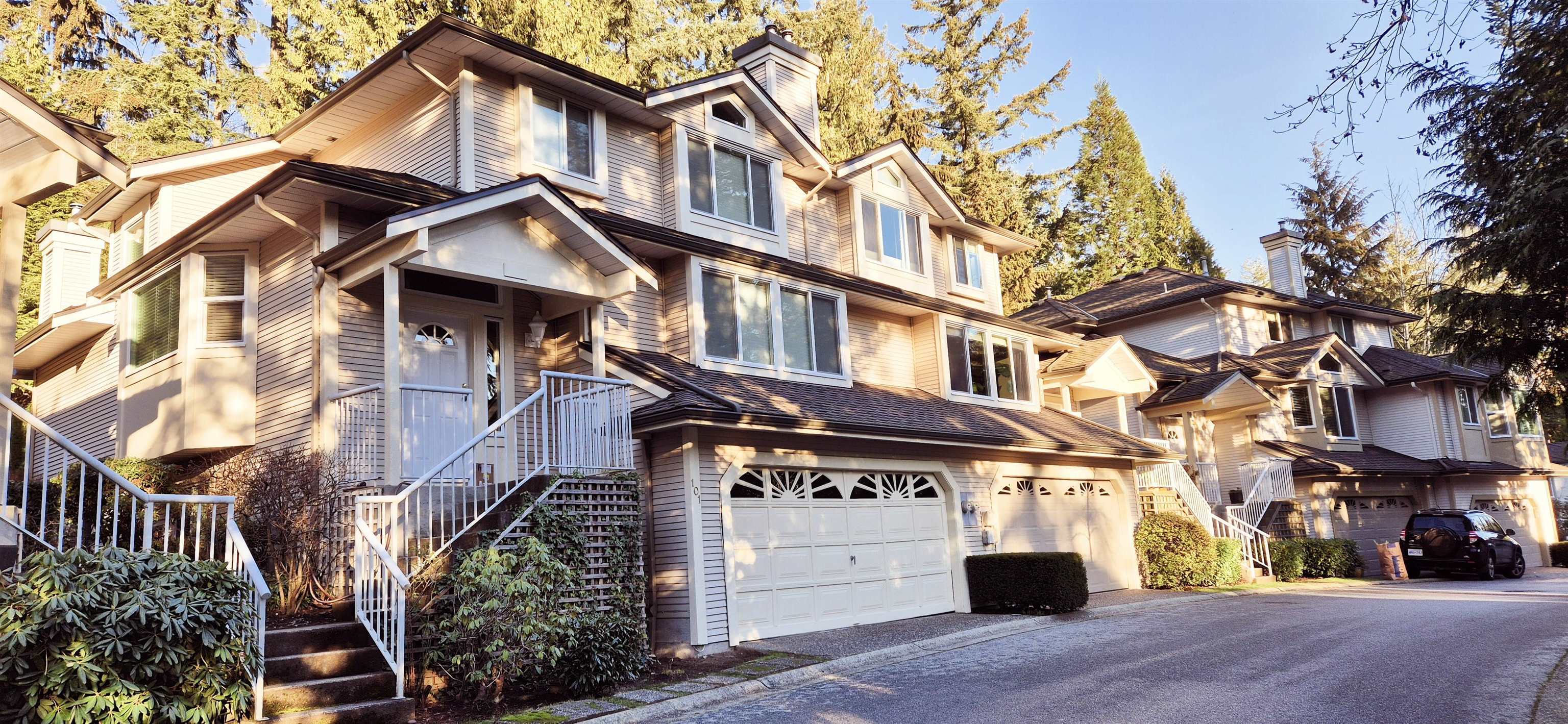 Experience the best of Port Moody living in this 1/2 duplex-style townhome in the prestigious Treetops community. Offering beautiful views and a serene, forested backdrop, this 4-bedroom, 3.5-bath residence features a spacious kitchen and family room, a den, and formal living and dining areas--ideal for entertaining. Upstairs, the primary suite boasts a generous walk-in closet with spa-like 5-piece ensuite, and two additional bedrooms. The versatile lower level includes a den/office that can serve as a 4th bedroom, and a large rec room with a bar. Residents of this well-maintained complex enjoy access to an indoor pool, hot tub, and exercise room. Walk to all levels of schools, and just a short drive to the SkyTrain, Suter Brook, Newport Village, Brewers Row, Rocky Point, and the hospital.